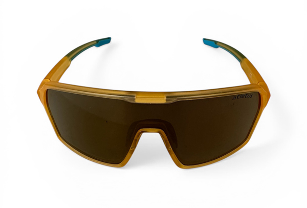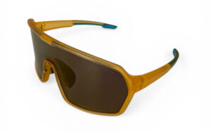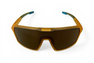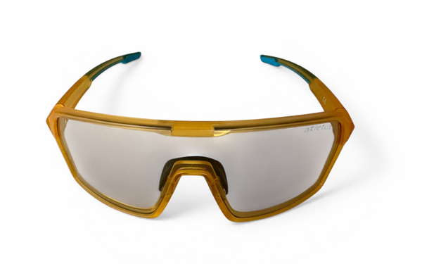 Sportglasögon Yellow Photochromic – med fotokromatisk vältäckande lins i ett stycke som reagerar på solens UV-strålar och då blir mörk. Ju starkare UV-strålning ju mörkare blir linsen. Vid ingen eller mycket svag UV-strålning är linsen transparent.