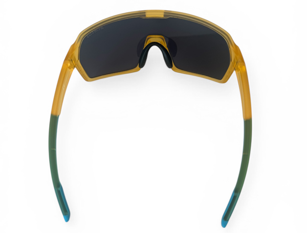 | Båge | Gul i stryktålig polykarbonat med svart mjuk näsbrygga och blå gummerade skalmändar. |